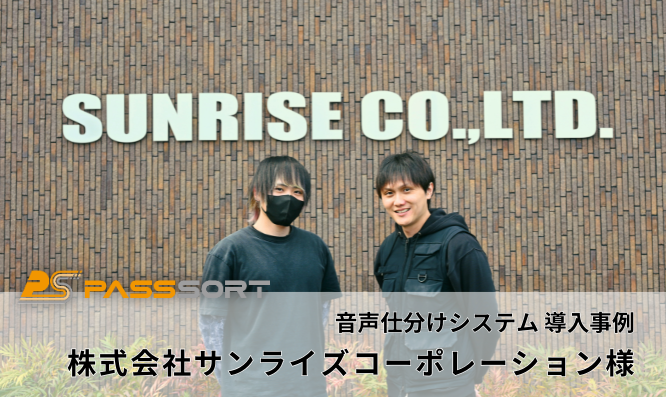 株式会社サンライズコーポレーション様の「PASSSORT(音声仕分けシステム)」導入事例を公開しました。